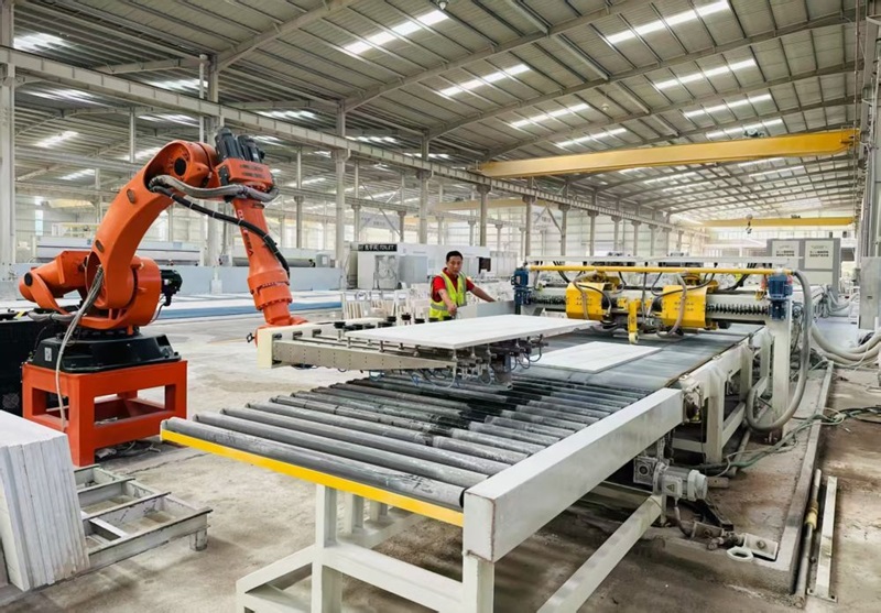 福建省锐丰源实业有限公司总经理吴小玉告诉记者,引入这条“黑科技”生产线后,不仅提高了石材加工的效率和切割的精度,也节约了成本。“预计每年可节约人力成本360余万元,单条产线年产值跃升至1500万元以上,生产效率与经济效益双重飞跃。”他说。