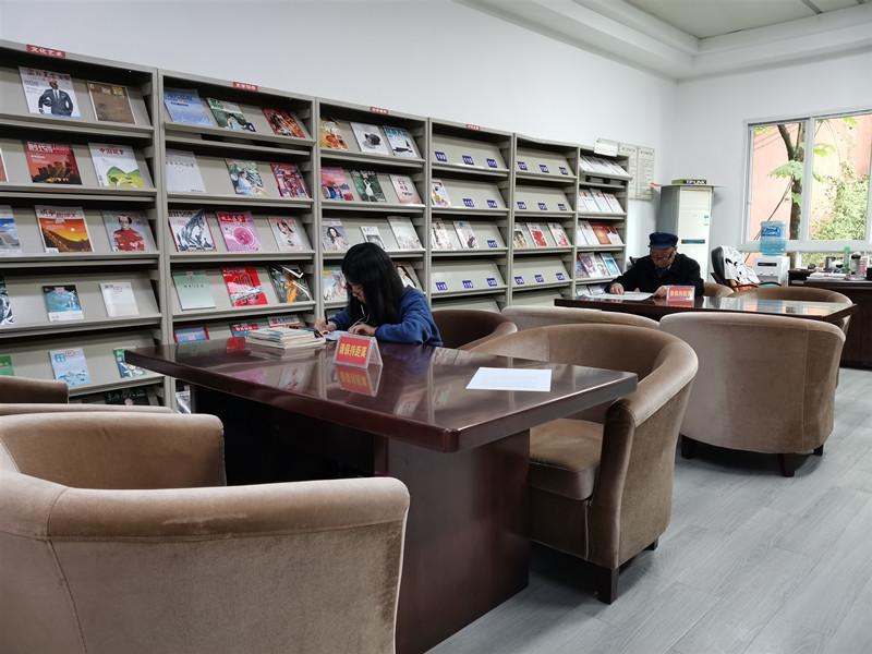 上午,记者来到县图书馆,在二楼报刊阅览室里,几位读者正专心致志的看着报纸,期刊阅览室里也有市民在里面翻阅资料。