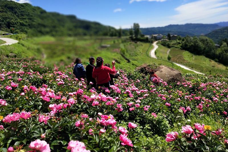 毛浴镇干溪村:芍药花开香满园 引来游客笑开颜