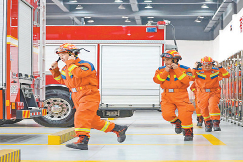 春节假期,贵州铜仁市玉屏侗族自治县消防救援大队队员开展训练,守护节日安全。胡攀学摄(影像中国)