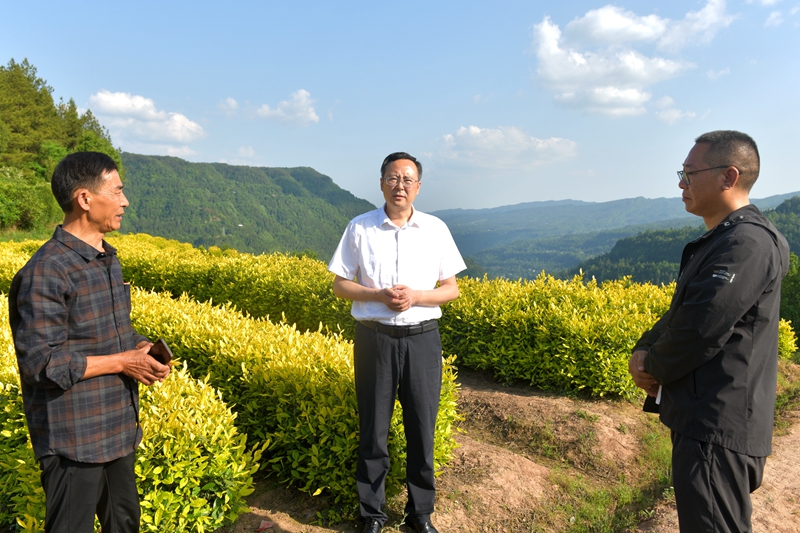 谭青松走进通江雪鸿堂茶业有限公司新茶加工现场,详细了解新茶采收、生产加工、产品研发、销售渠道和品牌建设等情况,在兴隆镇三角村茶叶基地采摘现场,了解询问今年茶叶采摘、茶农收入、群众利益联结机制、基地建设等情况。他指出,相关部门和乡镇要坚决落实市委“2+1”优势大品种计划,坚持“因茶兴业、因茶致富”的发展方向,力争在全县范围内建成集茶叶生产、加工、营销、文旅融合发展为一体的全产业链体系,持续推动茶叶产业高质量发展。