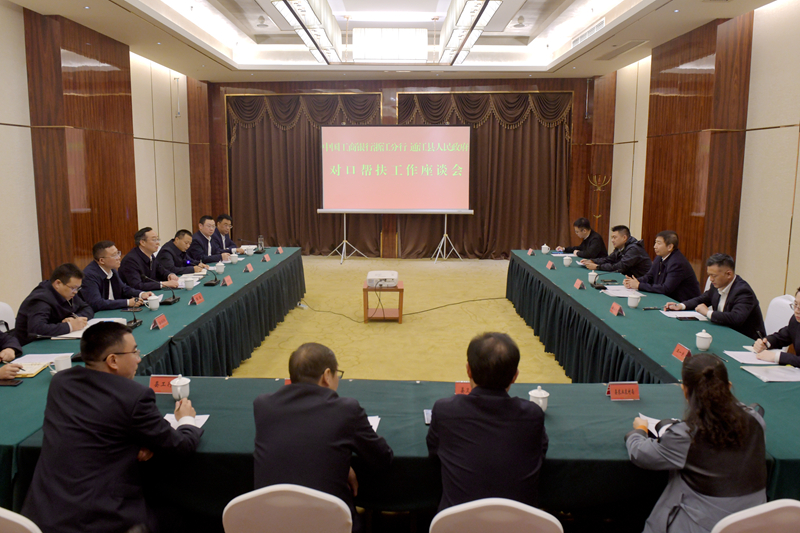 11月8日,中国工商银行浙江省分行党委书记、行长田耕一行来通调研对口帮扶工作,县委副书记、县长谭青松出席座谈会并致辞。
