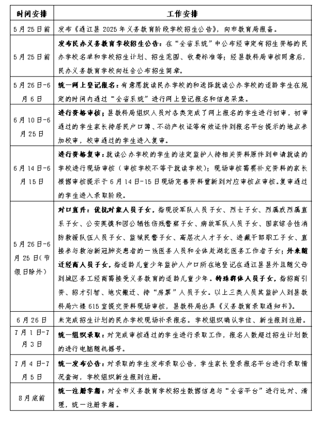 为贯彻落实《义务教育法》,确保县域内一年级、七年级适龄儿童少年全部就近入学,根据《巴中市教育局关于做好2025年义务教育阶段学校招生入学工作的通知》(巴教函〔2025〕17号)、《通江县2025年中小学及幼儿园招(送)生工作实施意见》的有关要求,为方便群众了解通江县义务教育学校招生工作的相关安排和要求,现将通江县2025年义务教育学校招生工作公告如下。
