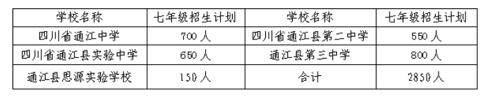 通江县2025年一年级(七年级)招生入学方案(第六批次 非城区义务教育阶段招生学校)