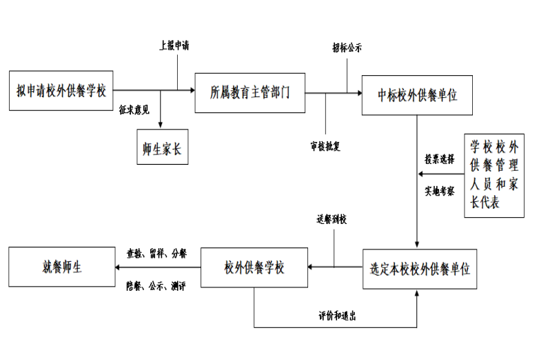 3.广泛了解收集师生在校就餐需求,向所属教育主管部门提交实施校外供餐申请。