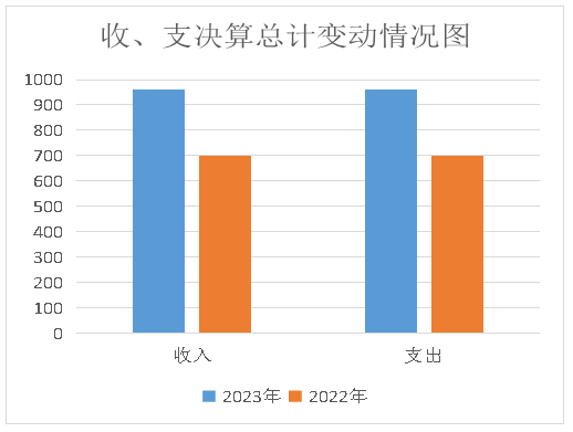 2023年度收入总计962.28万元、支出总计962.28万元。2022年收入总计700.43万元、支出总计700.43万元。与2022年相比,收入总计增加261.85万元,上升27.21%;支出总计增加261.85万元,上升27.21%。主要变动原因是本单位医疗服务能力水平上升,前来就诊的人员增加,本单位事业收入和其他收入相较2022年增加。