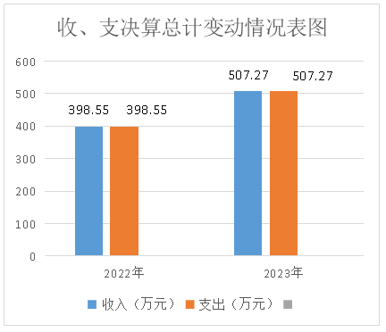 2023年度收支总计507.27万元。与2022年相比,收支总计各增加144.25万元,增长27.27%。主要变动原因是本年度医院事业收入增加。