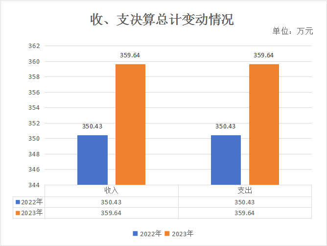 2023年度收支总计均为395.64万元。与2022年度相比,收支总计各增加45.21万元,增长12.9%。主要变动原因是2023年本院加强人才培养,不断提高医疗质量和医疗技术水平,改善就医环境,业务收入增加;因购买医疗设备,业务支出增加。
